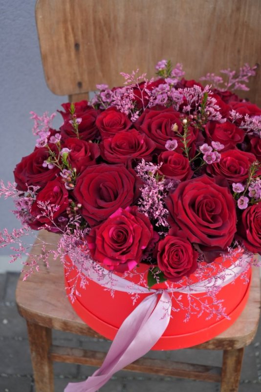 Romantický kvetinový box v červenom prevedení